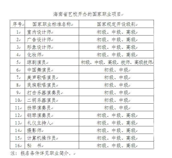 根据海南省人力资源和社会保障厅、海南省人力资源开发局2013年全省职业资格统一鉴定计划,开云官网将开展全省艺术行业的国家职业资格考试工作,为做好报名和考试工作,特制定本简章。