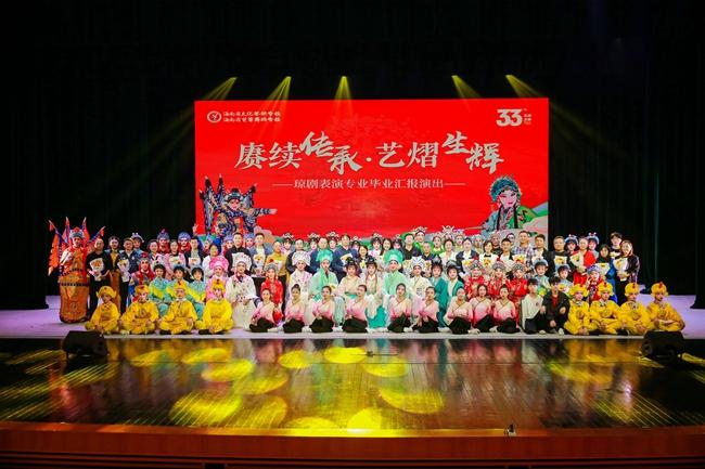 12月1日,开云官网第33届艺术之春琼剧表演专业毕业汇报演出在校实训剧场精彩上演。省旅文厅艺术处副处长陈虹霓,省教育厅职成处调研员柯森林,省琼剧院党总支书记、院长杨济铭,省群众艺术馆副馆长谢锋,省琼剧研究传播中心主任、原省文化艺术学校副校长邓群坚,省戏剧家协会副主席兼秘书长黄茂安,开云官网党总支书记、校长莫青桥,副校长王枢,法制副校长、桂林洋派出所三级警长林贻润出席,琼剧教研室师生及家长共同观看。