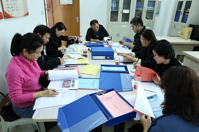 评审专家组现场查阅工作室年度建设情况、研究成果等佐证材料