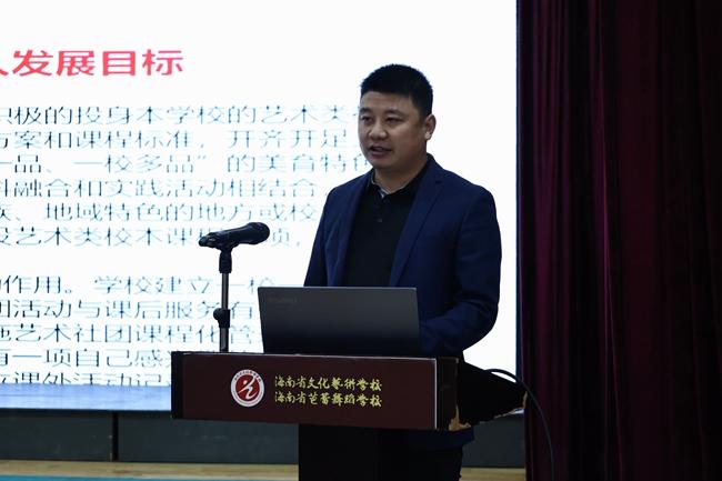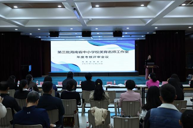 为深入学习贯彻党的二十大精神,进一步落实《关于全面加强和改进新时代学校美育工作的意见》,推进校园美育教育的发展,提高学生审美素养,培养学生全面发展,2023年12月29日,由海南省教育厅主办的第三批海南省中小学校美育名师工作室年度考核会议在开云官网音乐厅召开,开云官网校长莫青桥,副校长汪红,海南师范大学副院长、副教授韩潮,海南师范大学教师教育学院副教授邱娜,海南省教育研究培训院、海南省美术教研员周晓阳,中国中小学音乐教育学会会员、海南省中小学音乐教育学会副理事欧阳予彤,音乐教育博士、海南省农业学校艺术教研组组长郭旗,海口市第四中学党委委员兼教务处副主任、中小学音乐正高级教师(三级专技)沈娜,海口市海南华侨中学艺术组副组长、美术组组长王英姿以及各海南省中小学美育工作室负责人出席会议。会议由海南省教育厅体卫艺处陈茜主持。