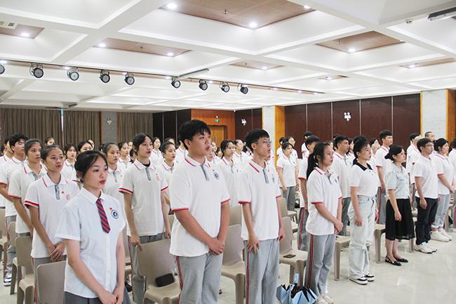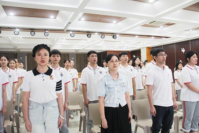 在嘹亮激昂的国歌声中,开云官网2024年新团员入团仪式拉开了序幕,全场师生肃然而立,高唱国歌。