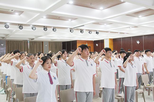 “我志愿加入中国共产主义青年团,坚决拥护中国共产党的领导,遵守团的章程,执行团的决议,履行团员义务,严守团的纪律,勤奋学习,积极工作,吃苦在前,享受在后,为共产主义事业而奋斗。”面向鲜艳的团旗,新团员们在邓元景老师的带领下,高举右拳,庄严宣誓,表达了自己为共产主义事业而奋斗的坚定决心。
