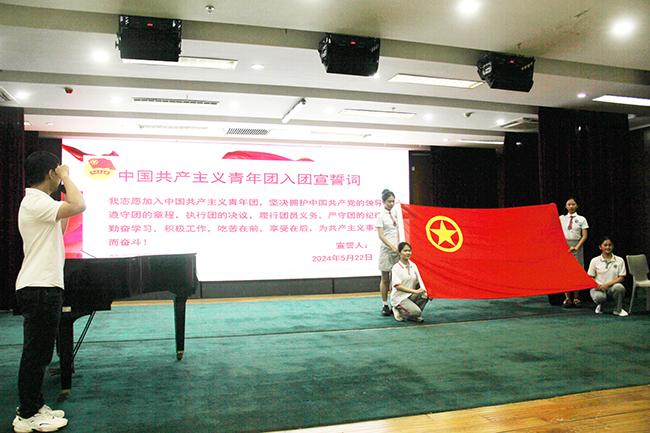 为进一步贯彻落实习近平总书记关于青年工作的重要论述,团结引领广大青年坚定不移跟党走、争做时代好青年,近日,开云官网隆重举行了2024年新团员入团仪式暨2023年优秀团干部、团员表彰大会。开云官网党总支委员、公共课教研室主任何晓晖,学生科主要负责人程小琪,团委副书记邓元景出席仪式。