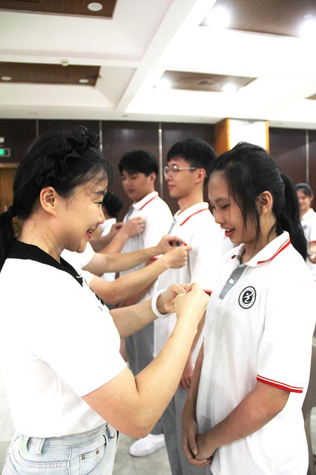 经过个人申请、班级团支部推荐、学校团总支审核上报,本次共有120名同学被光荣地批准加入中国共青团。何晓晖老师、程小琪老师、邓元景老师依次为全体新团员佩戴团徽、颁发团员证书。新团员们昂首挺胸,胸前的团徽熠熠闪光,脸上洋溢着成为一名共青团员的光荣与自豪。