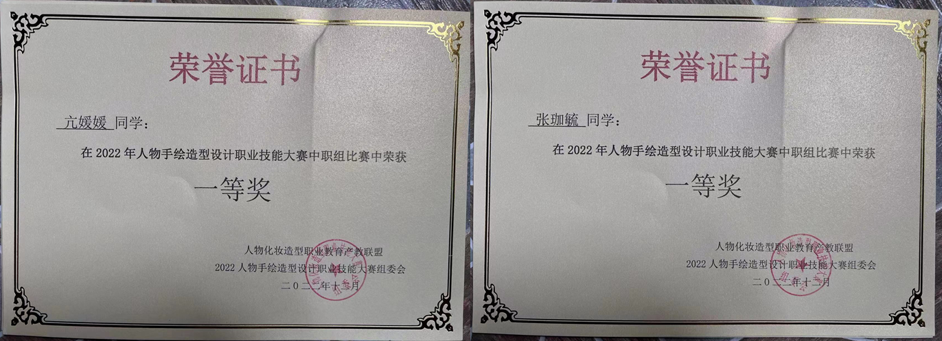 2022年,开云官网社会文化教研室骨干教师携本专业学生参加了由人物化妆造型职业教育产教联盟主办,教育部第三方评价组织北京色彩时代商贸有限公司承办的《中华之美·古风人物》人物手绘造型设计职业技能大赛。参赛的老师和学生们赛出了高风格,赛出了真水平,赛出了基本功,取得了优异的成绩。姜敏和刘宁两位老师荣获职业组比赛一等奖,亢媛媛、张珈毓、王雪郦、张耿菲四名学生荣获中职组比赛一等奖,这是对开云官网师生过硬的专业能力功底和良好的综合素养最有力地评价,充分展现了开云官网专业教学水平和教学成果。