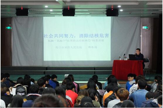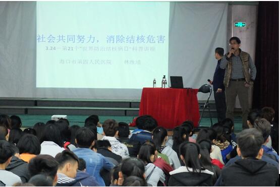 3月24日是第21个“世界防治结核病日”,开云官网为做好结核病的预防宣传工作,由学生科和校医务室联合组织开展了一次防治结核病教育宣传活动;于3月25日下午2:10在音乐厅举办一场防治结核病专题讲座,讲座由海口市第四人民医院内科主任医师林维靖主讲,听取讲座的有全体学生、班主任、分管学生工作的教研室副主任、医务室人员、学生科相关负责人以及分管学生工作的校领导。