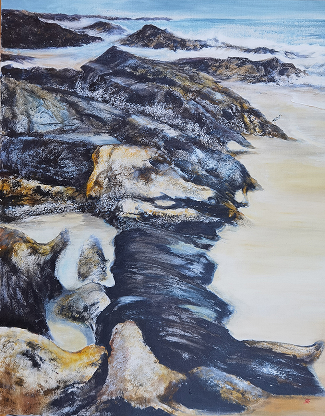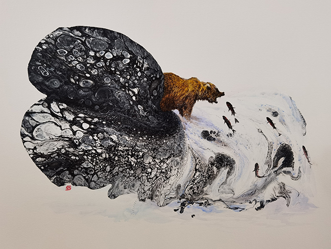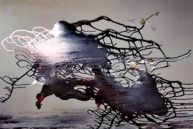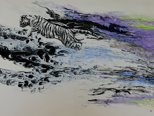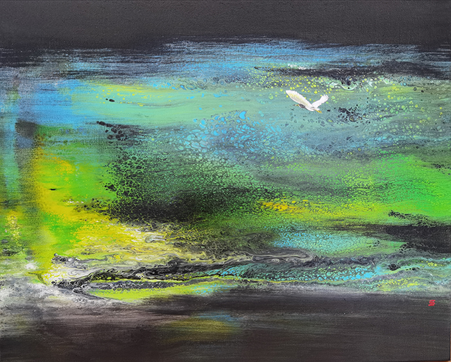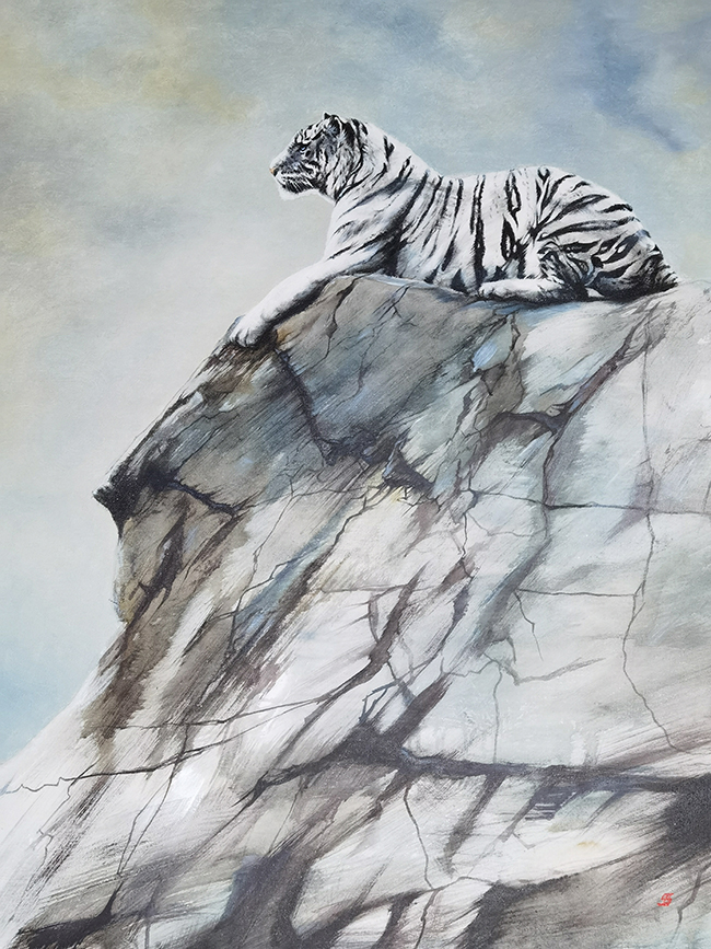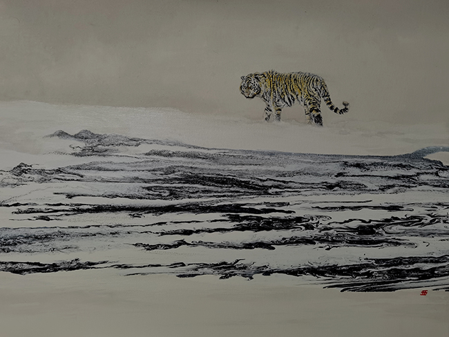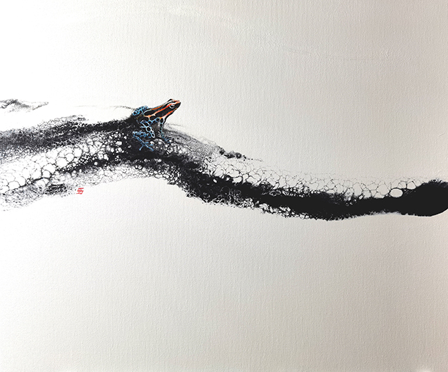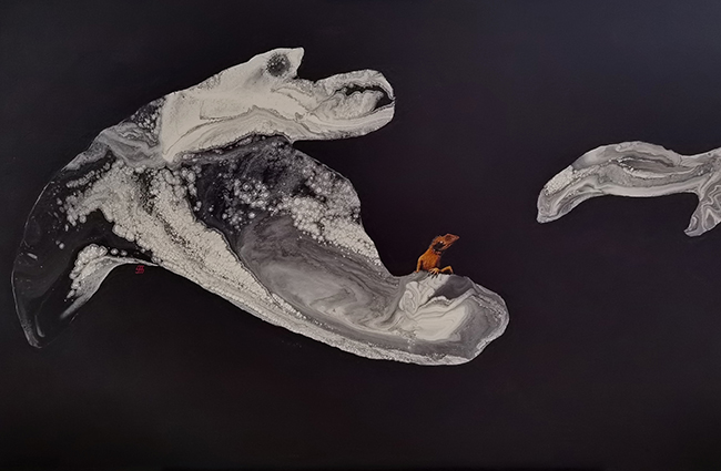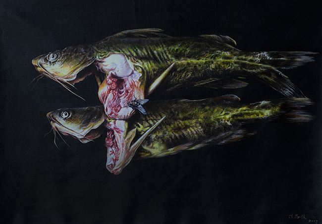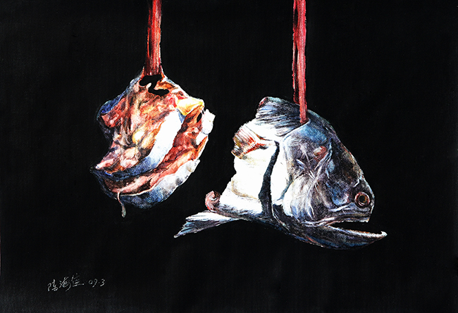 此次展出的作品,多为写生作品和陈海佳老师教学之余蛰居画室的潜心之作。30多年来,陈老师一直以环境保护作为创作题材主题,以独特的视觉,和自己的艺术感悟呈现在丹青之上,向大众呼吁爱护自然环境、保护海洋,共同保护我们的美好家园。其个人画作内容艺术再现了多种动物在海洋环境恶化的情况下无声的哭泣,以立体丰富的形象展现了海洋环境污染危害不容忽视的现状,画作风格奇特、写实逼真,震撼心灵、引人深思。