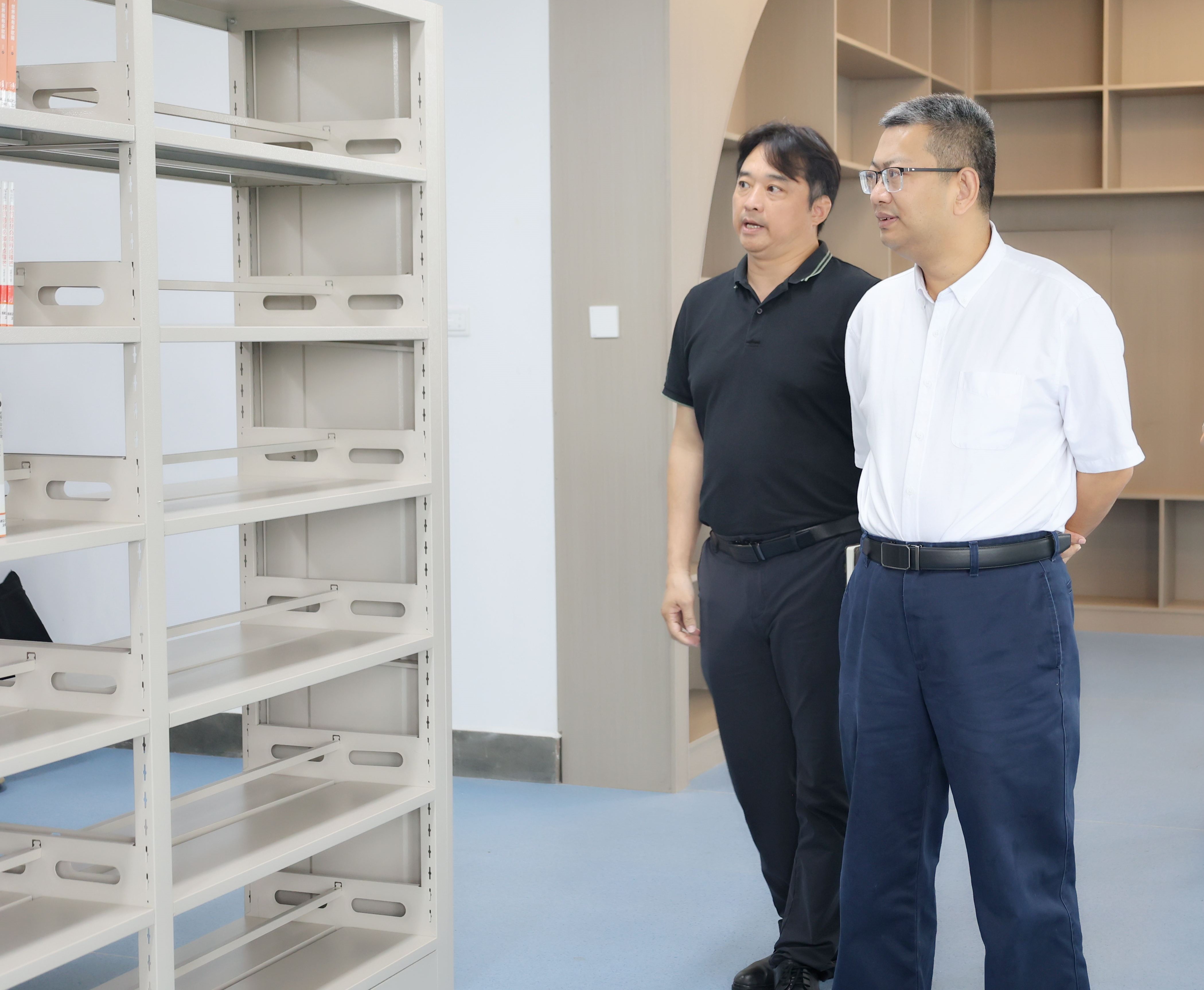 刘成副厅长一行到校后,首先在校园内开展实地调研,重点视察了开云官网新建的美术与图书馆楼,深入了解图书馆设施设备、图书采购等情况。