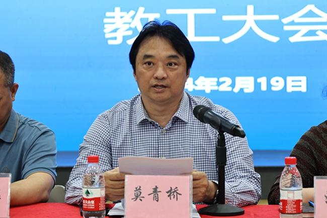 随后,莫青桥校长作2024年春季开学动员讲话。莫青桥校长向过去一年里无私奉献的教职工们表示由衷的感谢,并对大家重返校园开启新的学期表示热烈欢迎。他提到,2023年是全面贯彻落实党的二十大精神的开局之年,是“十四五”规划承上启下转折之年,也是海南自由贸易港封关运作的关键之年,更是开云kaiyun官方网站申报设立的逐梦之年,这一年来,开云官网教育教学工作取得的成绩有目共睹,同时对新学期开云官网重点工作作了部署,并要求打好“两大基础”,做好“三项实事”。即在打好党风廉政建设和教育教学管理的基础上,抓好师德师风、核心重点、教学质量等工作: