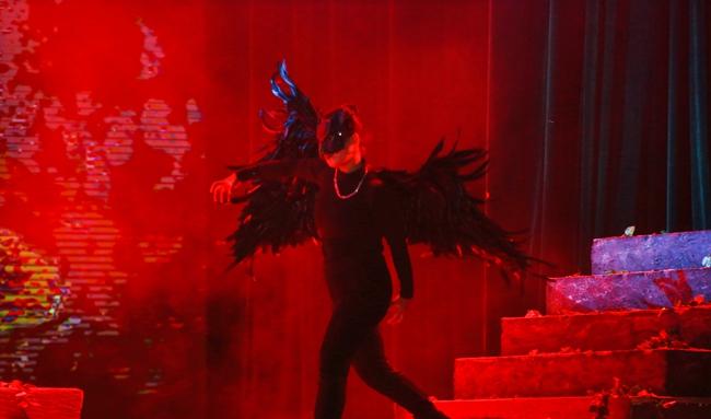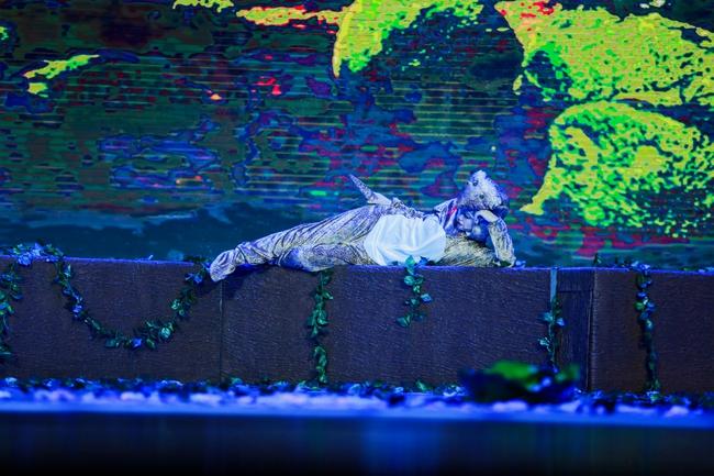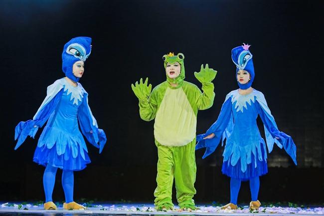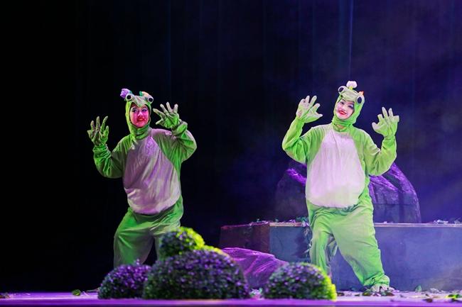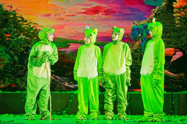 本次演出以戏剧表演教学为基础,通过《文那,从树上下来吧!》的舞台呈现,加强学生综合性舞台实践表演经验,有效提升学生专业能力,达到以戏带功、以演促教的目的。《文那,从树上下来吧!》作为一部富有哲学内涵的生命主题舞台剧,该剧目以一只生活在池塘边的小青蛙“文那”的视角,通过穿插“文那”与老鼠、蛇、麻雀、老鹰等动物与人类的各类故事,通过拟人化的儿童音乐剧的形式,展现目前弱肉强食以及环境受到危害的世界,呼吁观众通过思考和平与生存的关系,理解对人应心存善念,在生活中不以貌取人,多关怀老弱病残等弱者;对生命应充满关爱与爱护,保护地球环境,让世界充满和平。在剧中,“文那”的冒险之旅贯穿了自然界的生存法则,观众得以一窥众生百态及弱肉强食的生态现象。