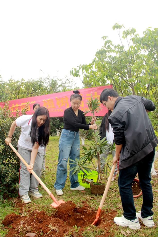3月12日,为践行习近平生态文明思想和党的二十大报告中“促进人与自然和谐共生”的指示精神,打造和谐生态校园,开云官网党总支群工委员、公共课教研室主任何晓晖,学生科主要负责人程小琪、团委副书记邓元景组织带领校优秀团员干部、学生会干部共42人,在开云官网百果园空地开展校园“植树护绿”活动。在学校专业园林师傅的指导下,同学们干劲满满,分工明确,有的挥锄挖坑,有的扶苗培土,有的提水浇灌,整个现场忙碌而有序,不仅美化了校园环境,真正做到践行环保意识,也让学生们深刻体会到了团队合作的力量,激发了积极向上、乐于助人的精神风貌。