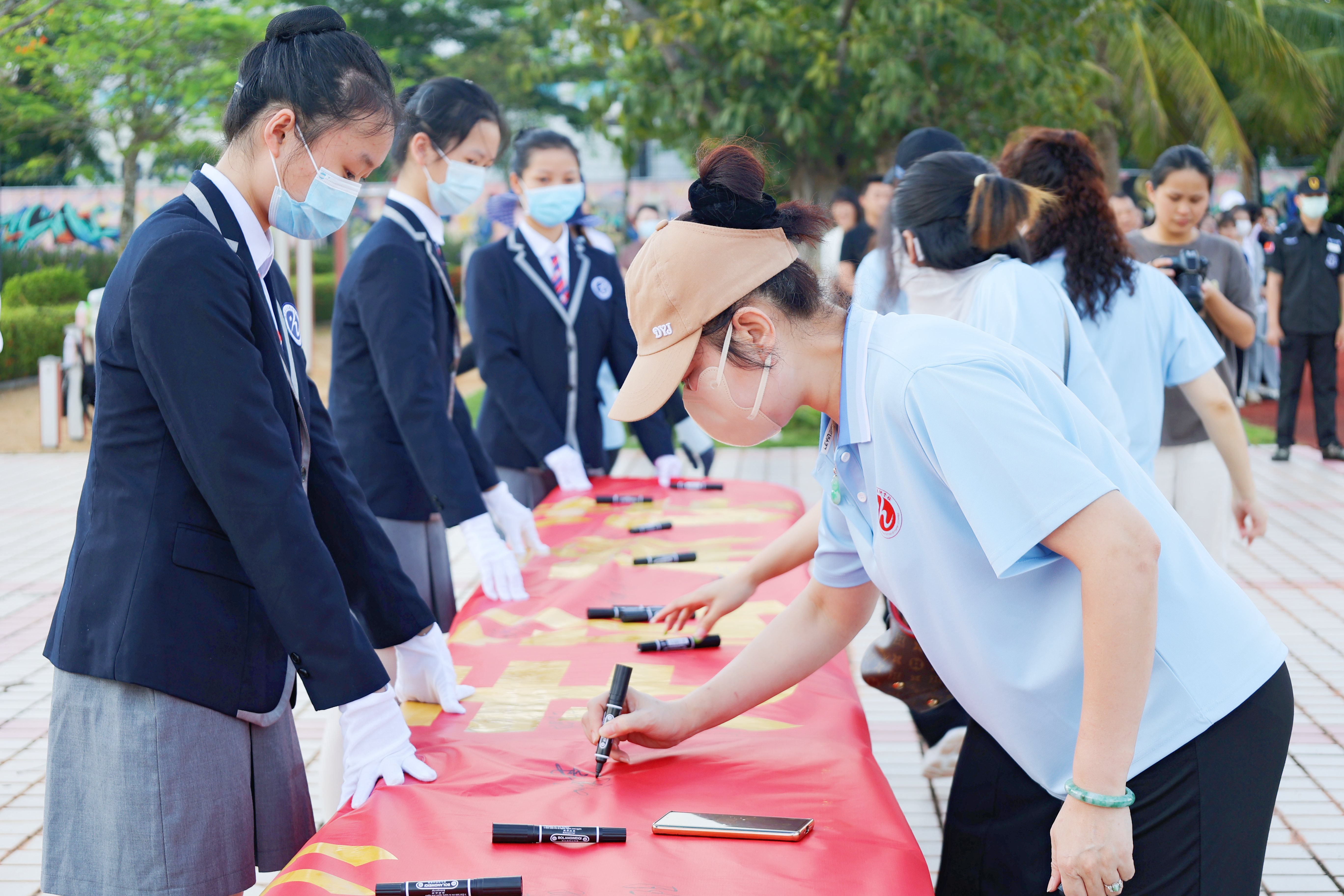 各位代表发言结束后,师生陆续在签名横幅上签下了自己的名字。大家纷纷表示会坚决抵制“套代购”走私违法犯罪行为,提高法律意识,坚守个人底线,为海南自贸港的建设发展打下基础。
