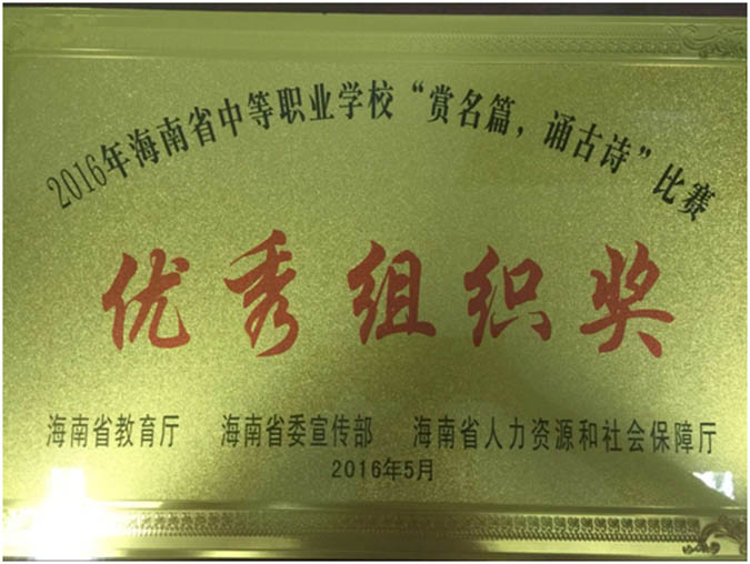 5月26日上午,由省教育厅主办的2016年“赏名篇.诵古诗“比赛在海南职业技术学院拉开了序幕,在汪红副校长的带领以及学生科、校团委、班主任的全力配合下,开云官网共有55名师生参加比赛,在24支队伍中脱颖而出,最终荣获省属”一等奖“、”优秀组织奖“等荣誉称号。