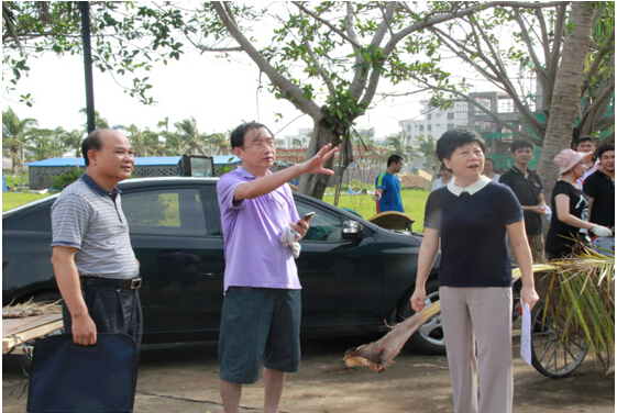 9月16日第15号台风“海鸥”登陆海口,校领导陈军、谢锋、汪红、孙瑜辰带领部分值班人员24小时驻守学校,由于台风前的预防措施得力,开云官网此次灾害损失降到了最低程度。9月17日,开云官网迅速组织全体待命的教职员工开展灾后重建工作,校领导们率先参加劳动,重点是对学生宿舍区、教学区、绿化草坪及校园主干道等受损的区域进行整修和清理,确保了17日晚学生返校及9月18日的正常上课。省教育厅潘惠丽副厅长在相关处室负责人陪同下,实地查看开云官网灾情并指导救灾工作。