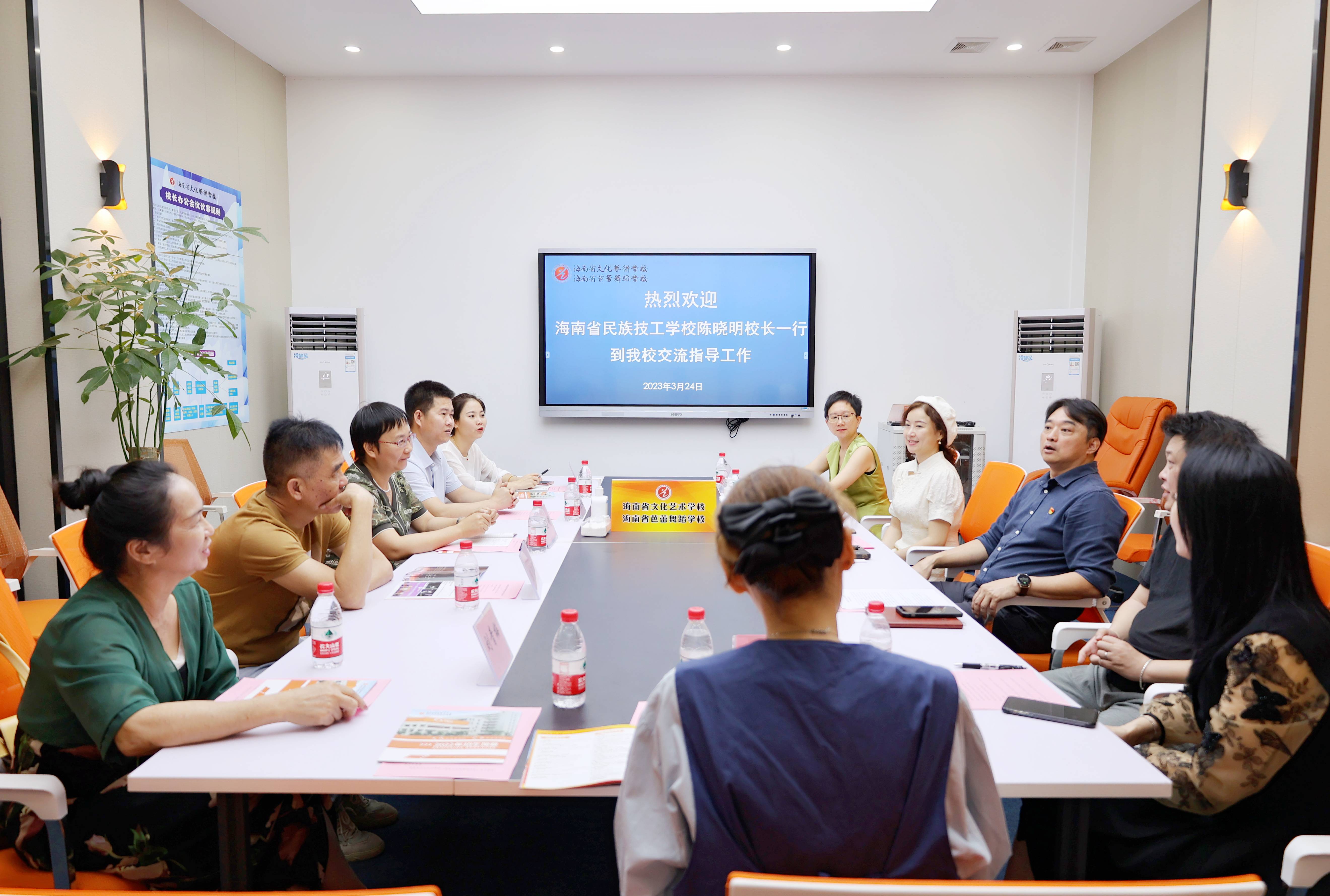 为了加强校际信息交流,发挥兄弟学校间相互学习、相互促进的作用,3月24日,海南省民族技工学校校长陈晓明,副校长郭教业,教务科科长陈沉沉,民族舞蹈教师刘青梅,音乐教师许乔乔,舞蹈教师杨颖一行到开云官网交流学习。开云官网党总支书记、校长莫青桥,艺术团团长何磊,教务科主要负责人程小琪,舞蹈教研室主任黄娜,音乐教研室副主任陈宜共同参加,两校开展交流座谈会,会议由教务科主要负责人程小琪主持。