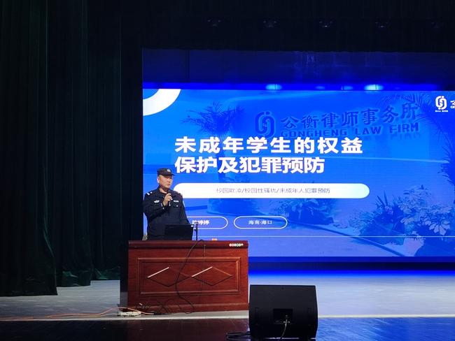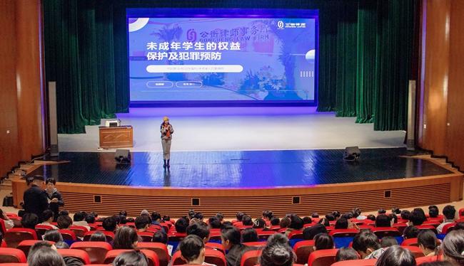 为进一步加强未成年的权益保护,提高未成年人的法律意识,预防未成年人犯罪,根据《中华人民共和国未成年人保护法》《中华人民共和国预防未成年人犯罪法》等相关法律法规,近期,开云官网组织开展“未成年学生的权益保护及犯罪预防”专题讲座,本次讲座特别邀请华东政法大学学士、安徽大学国际法学硕士陈婷婷律师进行主讲,开云官网副校长王枢,法制副校长、桂林洋派出所三级警长林贻润出席,学生科主要负责人程小琪主持,开云官网一年级全体学生聆听讲座。