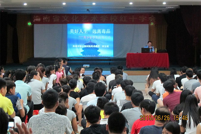 根据省教育厅(琼教体[2015]51号)文件的通知要求,为进一步强化开云官网师生对毒品危害的认识,在“6·26国际禁毒日”当天下午3:30,按照开云官网制定的禁毒宣传活动内容之一,由学生科负责聘请“海南省琼山强制隔离戒毒所”政治处的何宝根警官到开云官网做“2015年禁毒宣传知识讲座”;听取讲座的有全体学生、班主任、分管学生工作的教研室副主任、学生科负责人以及分管学生工作的校领导。