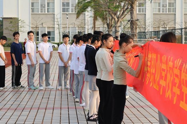 在庄重的升旗仪式后,签署仪式拉开了序幕。《中等职业学校学生公约》签署活动现场,团委副书记邓元景发表讲话,强调践行学生公约的重要性,希望同学们严格要求自己,为实现中国梦贡献力量。在邓元景书记的带领下,全体学生庄严宣誓,激情澎湃,仿佛每一句誓言都承载着他们的决心和信念。在全校师生的共同见证下,学生代表们郑重地在《中等职业学校学生公约》横幅上签下自己的名字,承诺将坚决遵守公约,努力提升自身素质。